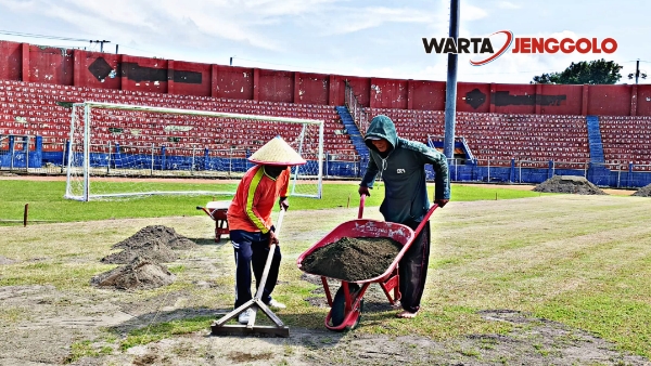 Salah satu fokus utama yang sedang digarap adalah pemerataan lapangan atau top dressing yang dilaksanakan pada Minggu siang (29/6/2025). Kegiatan ini dilakukan dengan pelapisan pasir khusus pada permukaan rumput stadion guna menciptakan permukaan lapangan yang rata, stabil, dan layak pakai sesuai standar yang ditetapkan PT Liga Indonesia Baru (LIB).
