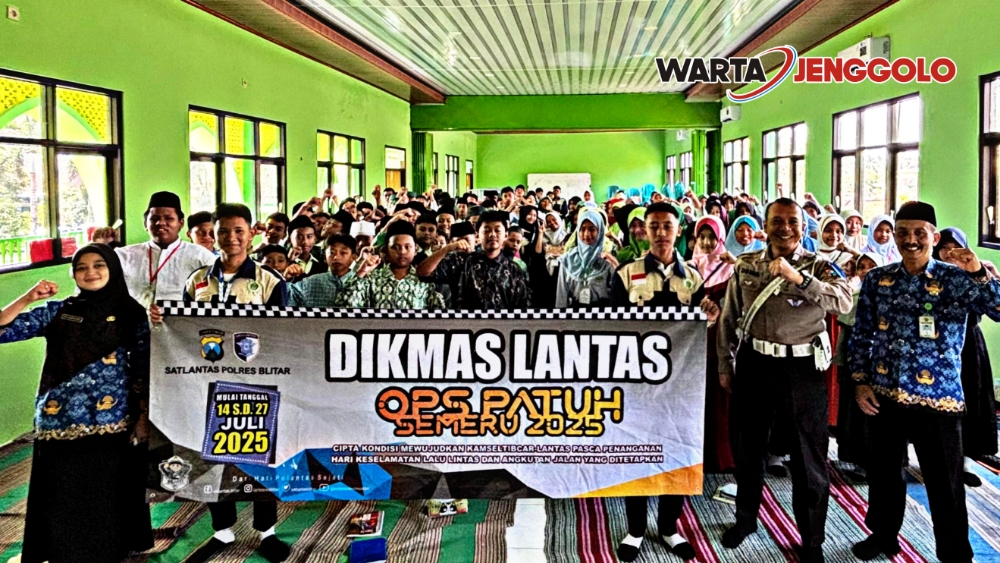 BLITAR – Dalam rangka menekan angka kecelakaan dan meningkatkan kesadaran masyarakat terhadap aturan lalu lintas, Satlantas Polres Blitar Polda Jawa Timur menggelar sosialisasi Operasi Patuh Semeru 2025 kepada kalangan pelajar. Kegiatan edukatif ini menyasar siswa MTsN 4 Blitar yang berlokasi di Desa Sukosewu, Kecamatan Gandusari, Kabupaten Blitar, Jumat (18/7/2025).