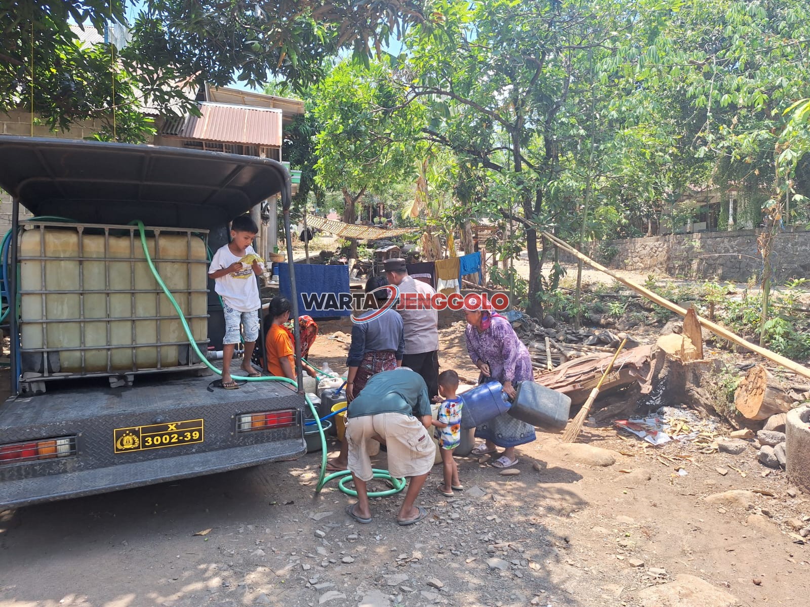 Ia menjelaskan, air bersih yang disalurkan diambil dari sumber mata air Banyu Biru sebelum dibawa ke lokasi menggunakan mobil patroli. “Alhamdulillah kegiatan berjalan aman, tertib, dan disambut antusias oleh warga,” tambahnya.