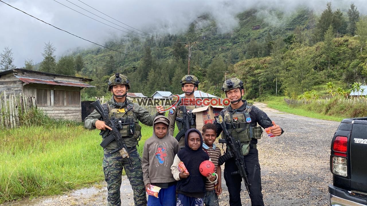 Personel Ops Damai Cartenz Tebar Keceriaan bersama Anak-Anak di Distrik Bibida, Paniai
