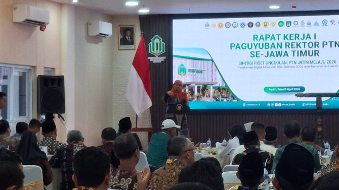 Kediri, WartaJenggolo.com – Gubernur Jawa Timur, Khofifah Indar Parawansa, secara resmi meluncurkan program Riset Kolaboratif PTN Jatim Melaju 2026. Acara berlangsung dalam Rapat Kerja I Paguyuban Rektor Perguruan Tinggi Negeri (PTN) se-Jawa Timur yang digelar di Gedung UIN Syekh Nurjati Wasil, Kediri, Rabu (15/4/2026).